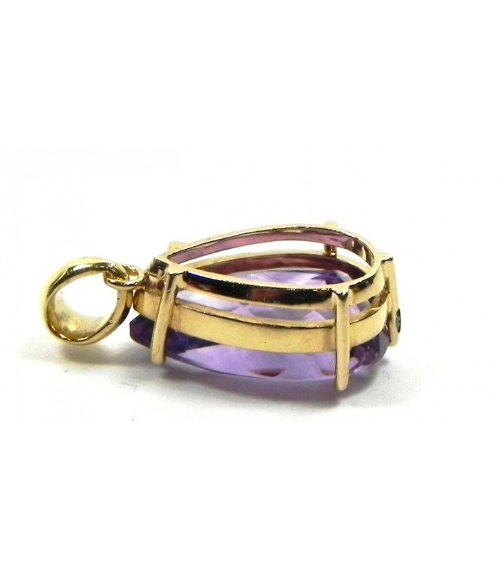 Pendentif goutte en or jaune et améthyste