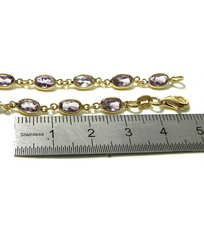 Elégant bracelet souple en or jaune 750°° (18kt) formé de 14 maillons sertis d'améthystes ovales lilas trés brillantes 6x5 mm totalisant environ 7 carats - fermoir mousqueton - longueur 18 cm - PB 4,7 gr - Parfait état et petit prix !