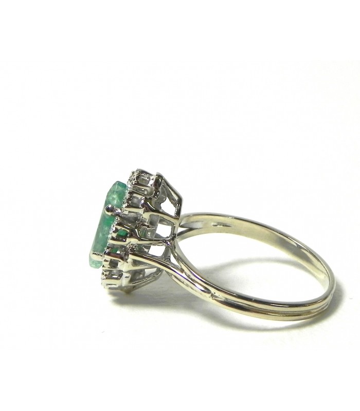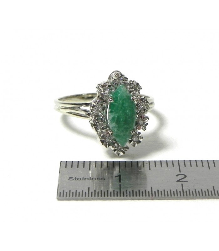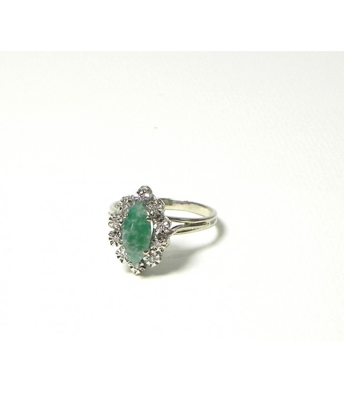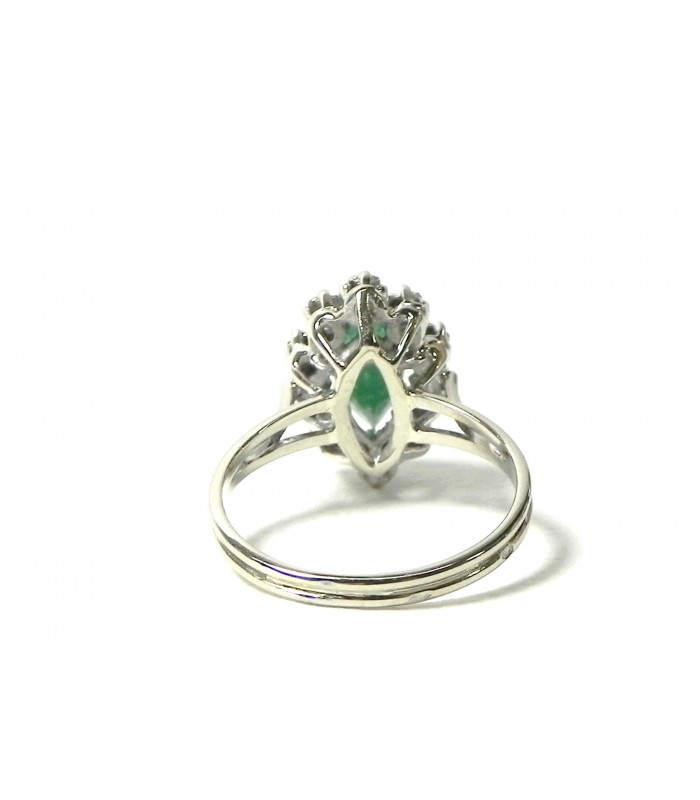 Bague navette émeraude, diamants sur or gris 750