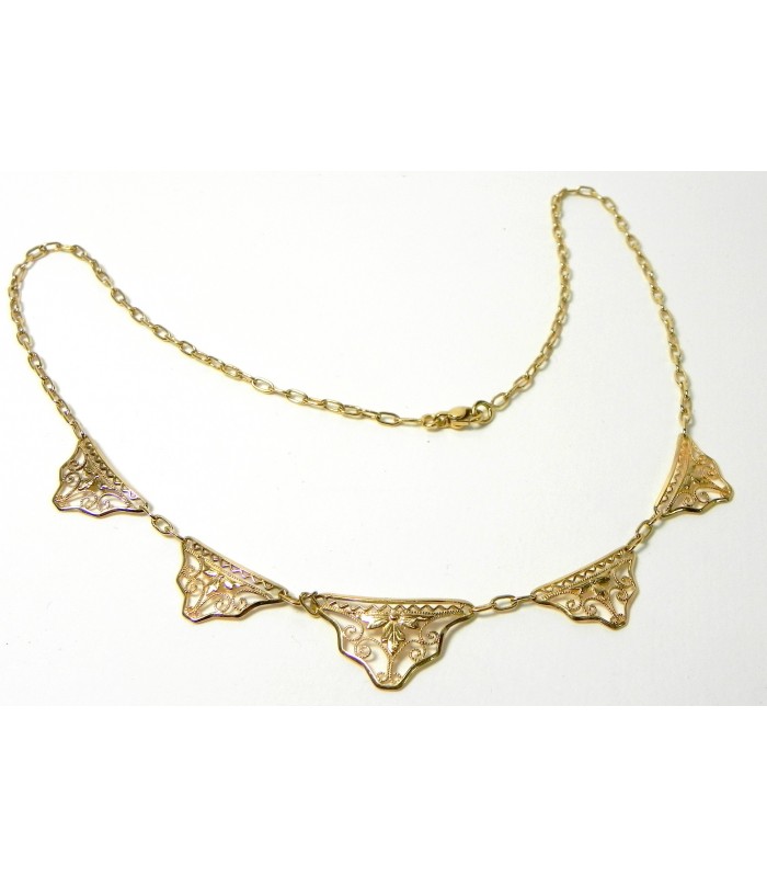 Collier draperie ancien 5 motifs en or 750