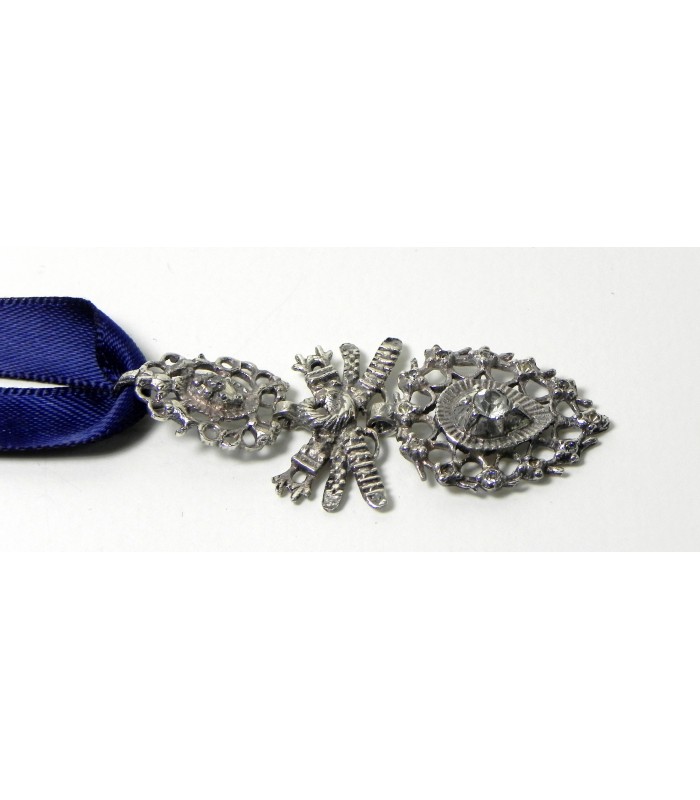 Croix Normande du Saint Esprit du XIXème en argent et strass sur paillons culassés articulés sur motif carquois - petit choc à l'avers sur paillon. Elégant motif dentelle sur l'entourage des motifs haut et bas - Hauteur 50 mm plus grande largeur 25mm pb 6,5 gr - (vendue sans cordon)