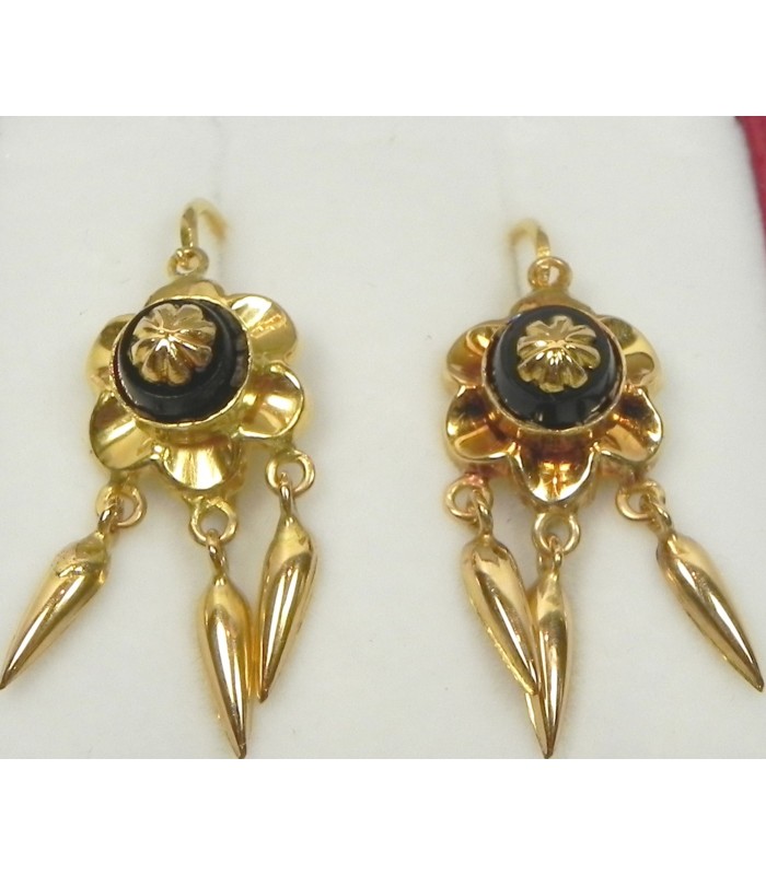 Pendents d'oreille XIXème en or 750°°/°° et onyx